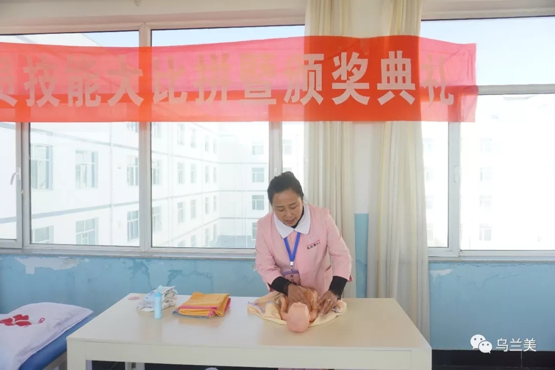 本次技能大比拼的主要比賽內容為:母嬰護理組的新生兒撫觸、產(chǎn)后綁腹帶;病人陪護組的壓瘡護理、測脈搏及血壓。母嬰護理組8人,病人陪護組9人,共計17人參賽。