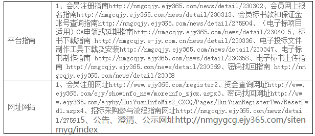 | 附件:設備清單 (2)投標人資格要求 本次招標要求投標人須具備以下資質,人員、設備、資金等方面具有相應的能力: ①須在工商行政管理部門辦理登記注冊(具有有效營業(yè)執(zhí)照); ②所供貨物均須提供產品合格證,電器類產品須提供“3C”認證證書。 ③所有資質文件、報告等真實有效,不得出現(xiàn)偽造、涂改、借用等情形。 ④履行合同所必需的設備和專業(yè)技術能力及專業(yè)技術人員; ⑤投標設備必須滿足招標人的設備參數要求,需要提供投標設備型號品牌、各模塊性能參數、尺寸等材料和設備正面、側面、背面、平視俯視等角度彩照; ⑥具有良好的銀行資信、商業(yè)信譽和履行合同的能力,提供財務報告或銀行資信證明; ⑦在最近三年內沒有騙取中標和嚴重違約等問題,可提供承諾書或法人在“國家企業(yè)信用信息公示系統(tǒng)”和“中國裁判文書”網無不良記錄的打印頁; ⑧單位負責人為同一人或者存在直接控股、管理關系的不同供應商,不得參加同一合同項下的采購活動;與采購人存在利害關系可能影響采購公正性的法人、其他組織,不得參加競標; ⑨不接受聯(lián)合體 (3)招標文件的獲取 凡有意參加本項目的潛在投標人,請于2020年8月26日9時至2020年9月2日17時 (北京時間,下同),登錄內蒙古產權交易市場網站“http://www.nmcqjy.com/”進行會員注冊及辦理CA, CA申領方法及平臺操作指南請登錄(http://www.ejy365.com/newlogin)進行學習,在網上購買并下載招標文件。 提示:CA僅用于投標文件的加密和解密,CA申領在供應商系統(tǒng)中即可完成,建議在開標時間前10天以上制作投標文件,請注意在領購招標文件時間內下載招標文件,否則將無法參與本項目,CA售價250元/個,售后不退。 本次項目的澄清/修改/變更/重新招標公告會通過網站發(fā)布,請參加的投標人及時登錄系統(tǒng)查看。 招標文件(僅支持E交易下載領取)售價500元/標段,售后不退。 賬戶名:內蒙古產權交易中心有限責任公司 開戶行:中國銀行內蒙古自治區(qū)分行營業(yè)部 行號:104191014056 賬號:以下載標書系統(tǒng)彈出通知信息為準 串標行為認定:標書款和保證金的子帳號為隨機生成,參加同一項目的多家供應商的標書款或保證金匯入同一子賬號,視為串標行為。 (4)投標文件的遞交 投標文件遞交的截止時間(投標截止時間,下同)為2020年9月9日9時30分,投標人應在截止時間前通過內蒙古產權交易中心電子(E交易平臺)招標投標交易平臺遞交電子投標文件。 注:逾期送達的投標文件,電子招標投標交易平臺將予以拒收。采用遠程電子開標,投標人無須到達開標現(xiàn)場,可遠程使用CA解密。 (5)付款方式 協(xié)議簽訂之日起5個工作日內,我方向供應商支付貨款總金額的45%作為定金,并于到貨5個工作日內,供應商向我方提供全額形式增值稅普通發(fā)票,再付50%貨款,剩余5%貨款作為質保金,如無質量問題1年后付清。 3.聯(lián)系方式 采購人名稱:內蒙古烏蘭美健康服務集團有限公司 聯(lián) 系 人:姚佳秀 聯(lián)系電話:17604742599 內蒙古產權交易中心有限責任公司 地址:內蒙古呼和浩特市賽罕區(qū)阿吉泰路3號 聯(lián) 系 人: 楊艷 聯(lián)系電話: 18586095937 郵箱:nmcqcg@163.com 技術支持電話:0471-3473040(報名、標書下載上傳等)/0471-3473016(CA申請) |